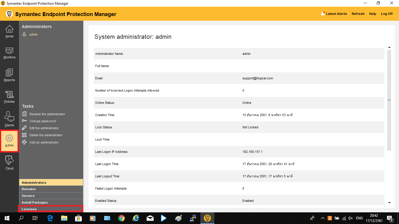 • 1. กดเข้าไปที่ Admin ที่แถบเครื่องมือด้านซ้ายของโปรแกรม จากนั้นเลือก “Licenses”