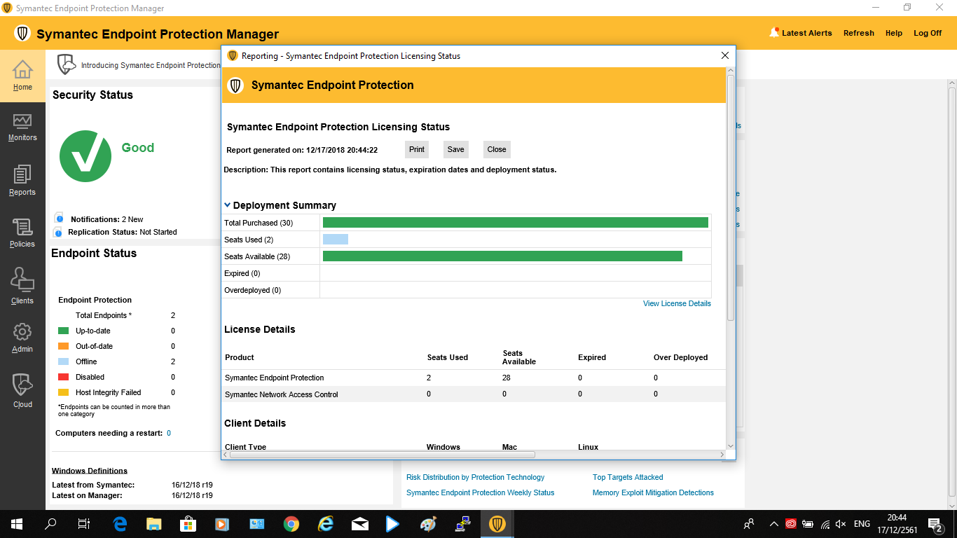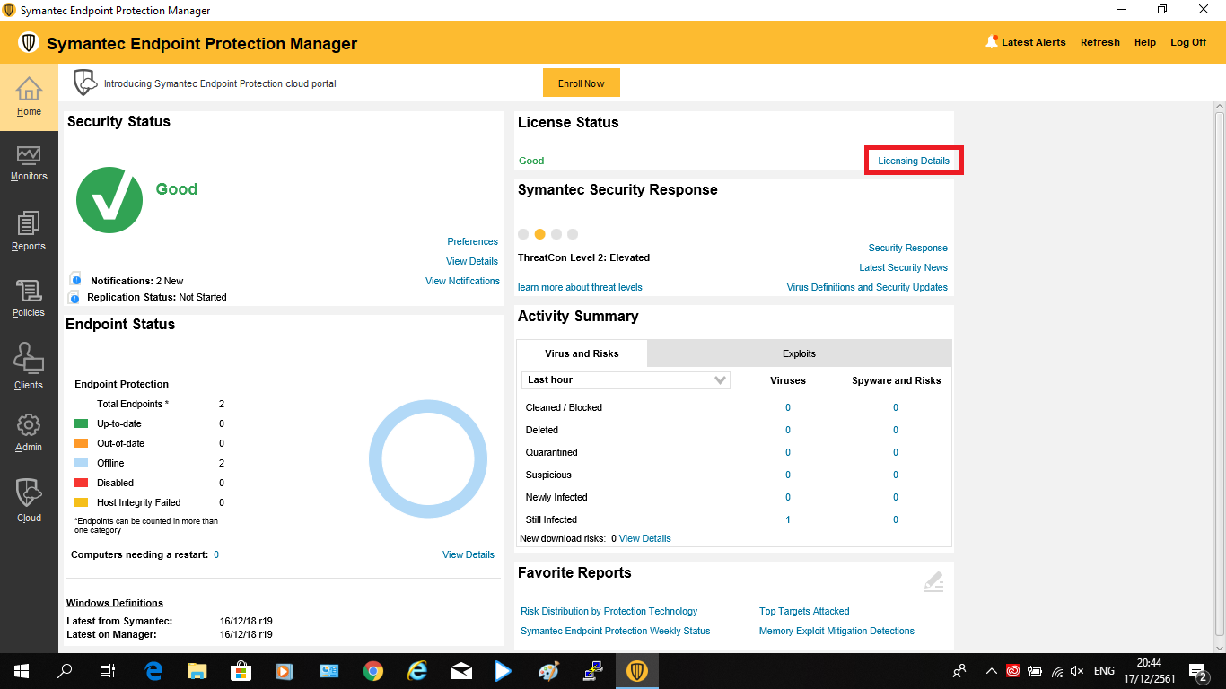 9. สามารถดูรายละเอียดเครื่องลูกข่ายว่าติดตั้งไปแล้วกี่เครื่องได้ที่หน้า Home แล้วเลือก “Licensing Details”