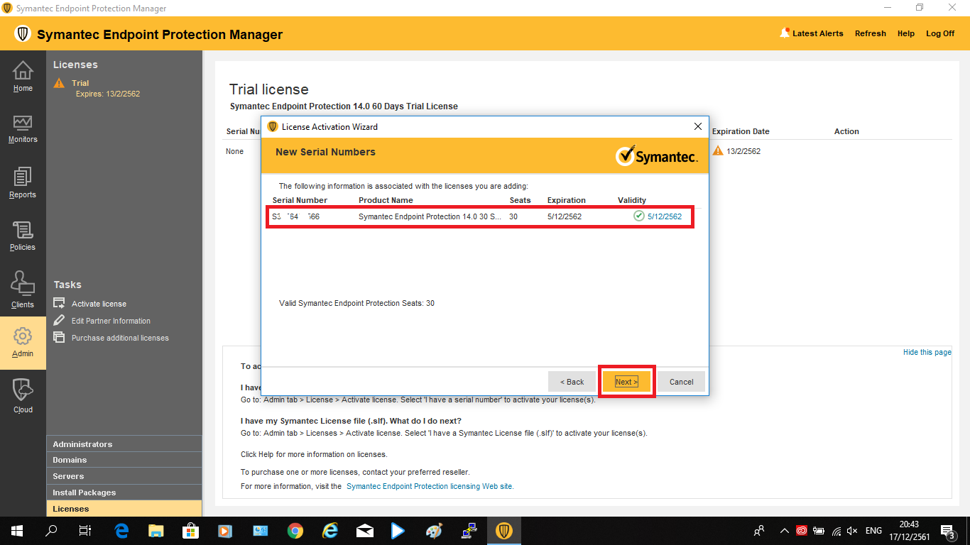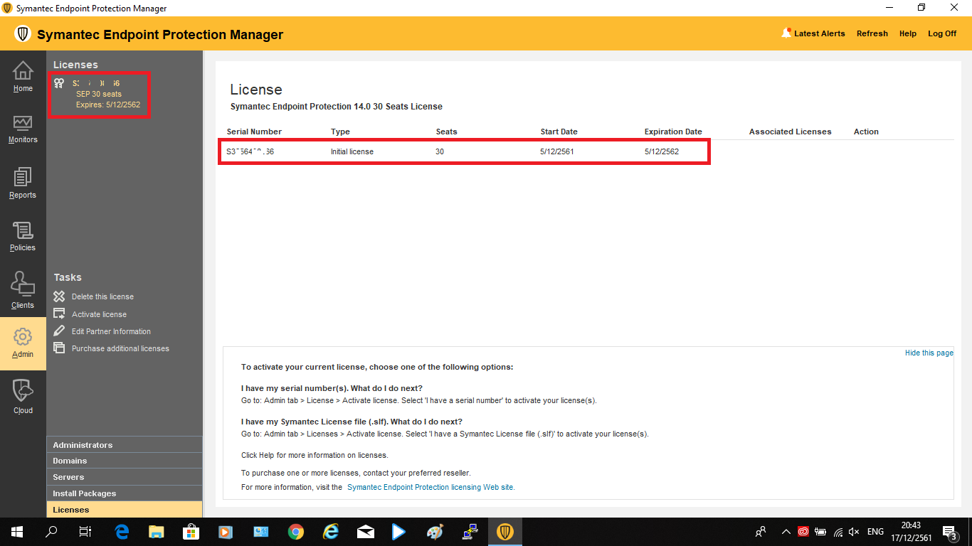 8. แสดงรายละเอียด License และวันหมดอายุของ License