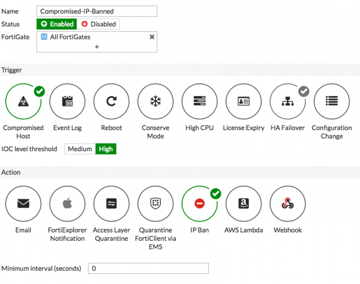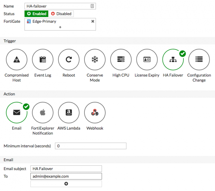 2.2 => หากเวอร์ชั่น FortiOS ของคุณคือ 6.0.0 หรือ 6.0.1 ให้ใช้คำแนะนำต่อไปนี้เพื่อทดสอบ Automation stitches