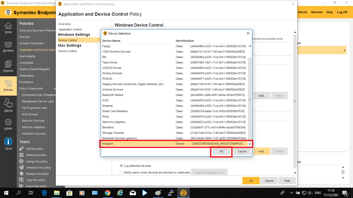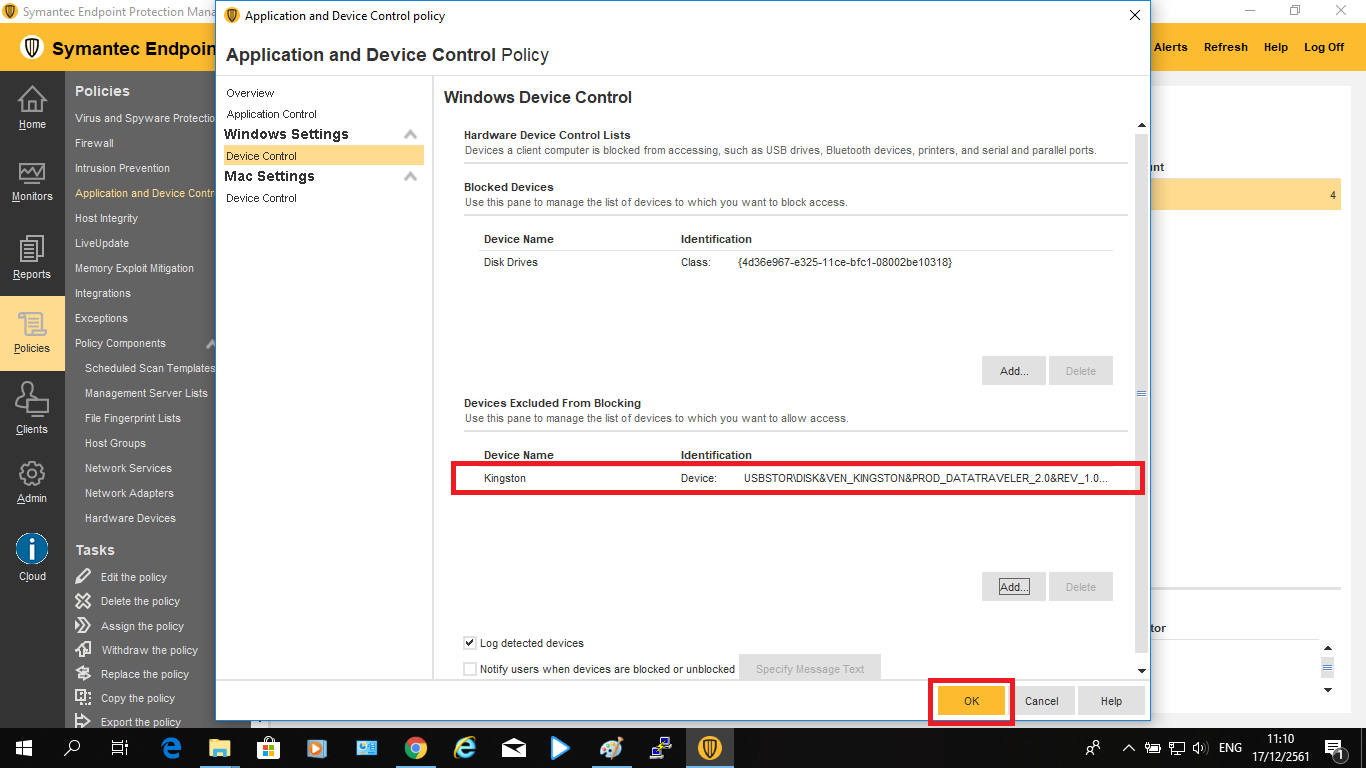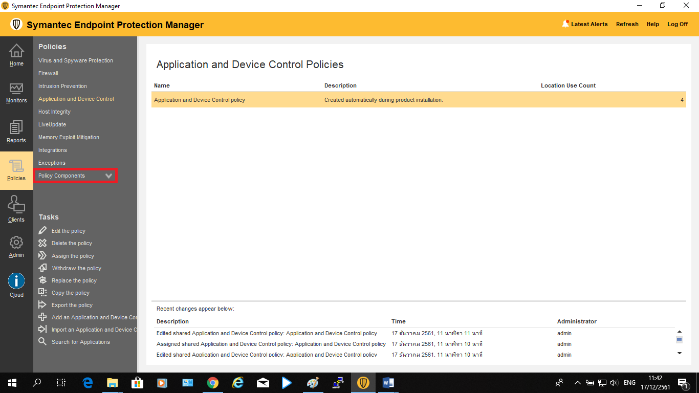 18. ที่แถบสถานะจะแสดงว่าได้มีการ Assign Policy ที่ชื่อ Application and Device Control policy ลงไปแล้ว