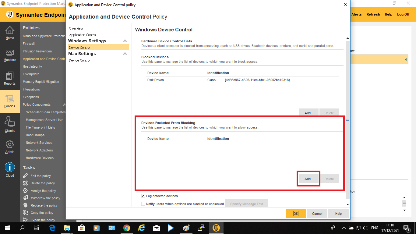 12. ในส่วน Devices Excluded From Blocking เลือก “Add”