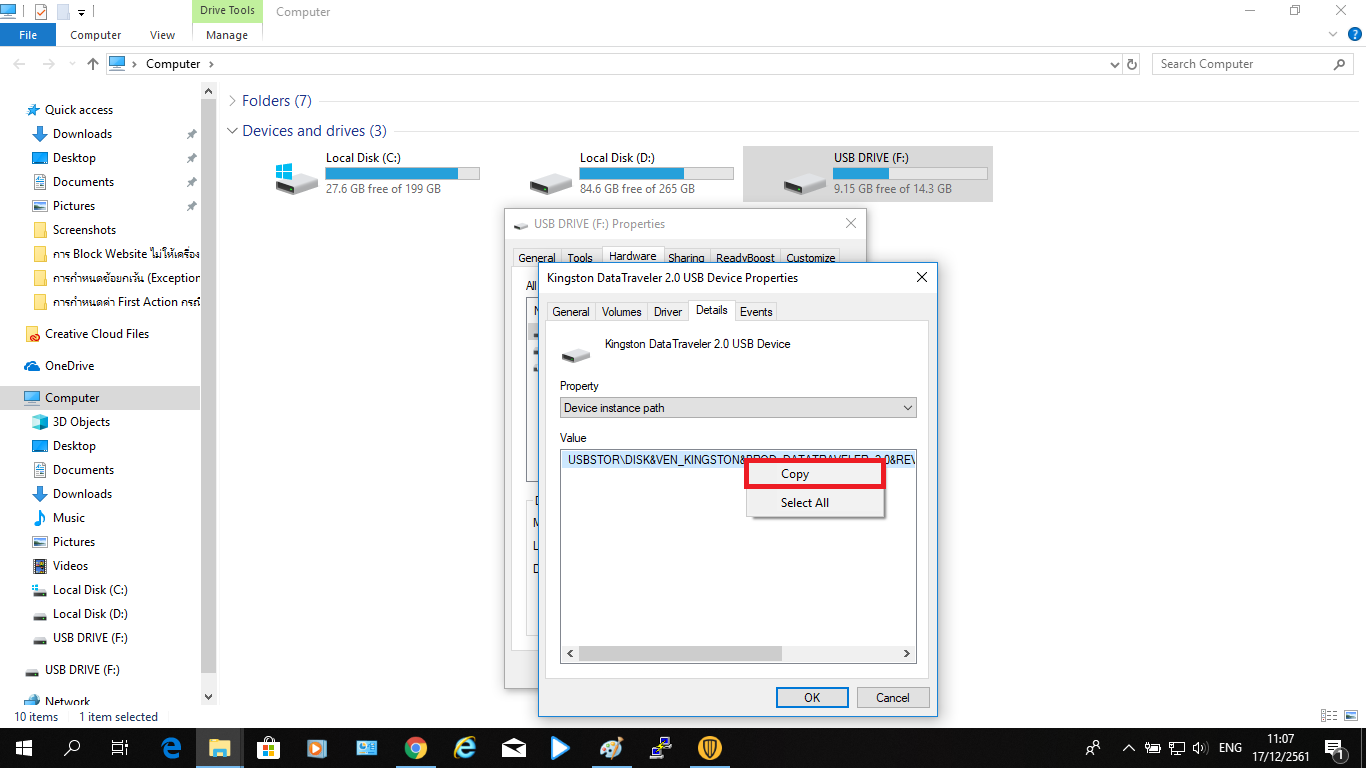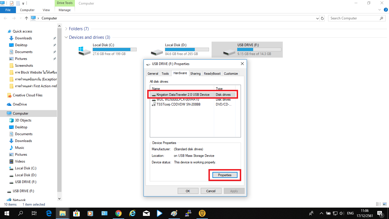 1. เลือกอุปกรณ์ที่ต้องการอนุญาต จากนั้นคลิกขวา > Properties
