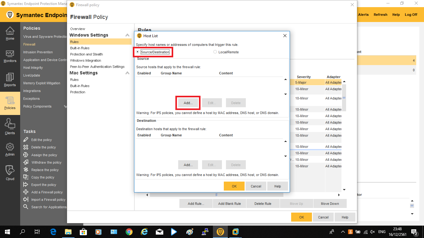 10. ในส่วน Application ดับเบิ้ลคลิกเข้าไป จากนั้นเลือก “Source/Destination” แล้วเลือก “Add” หัวข้อ Source
