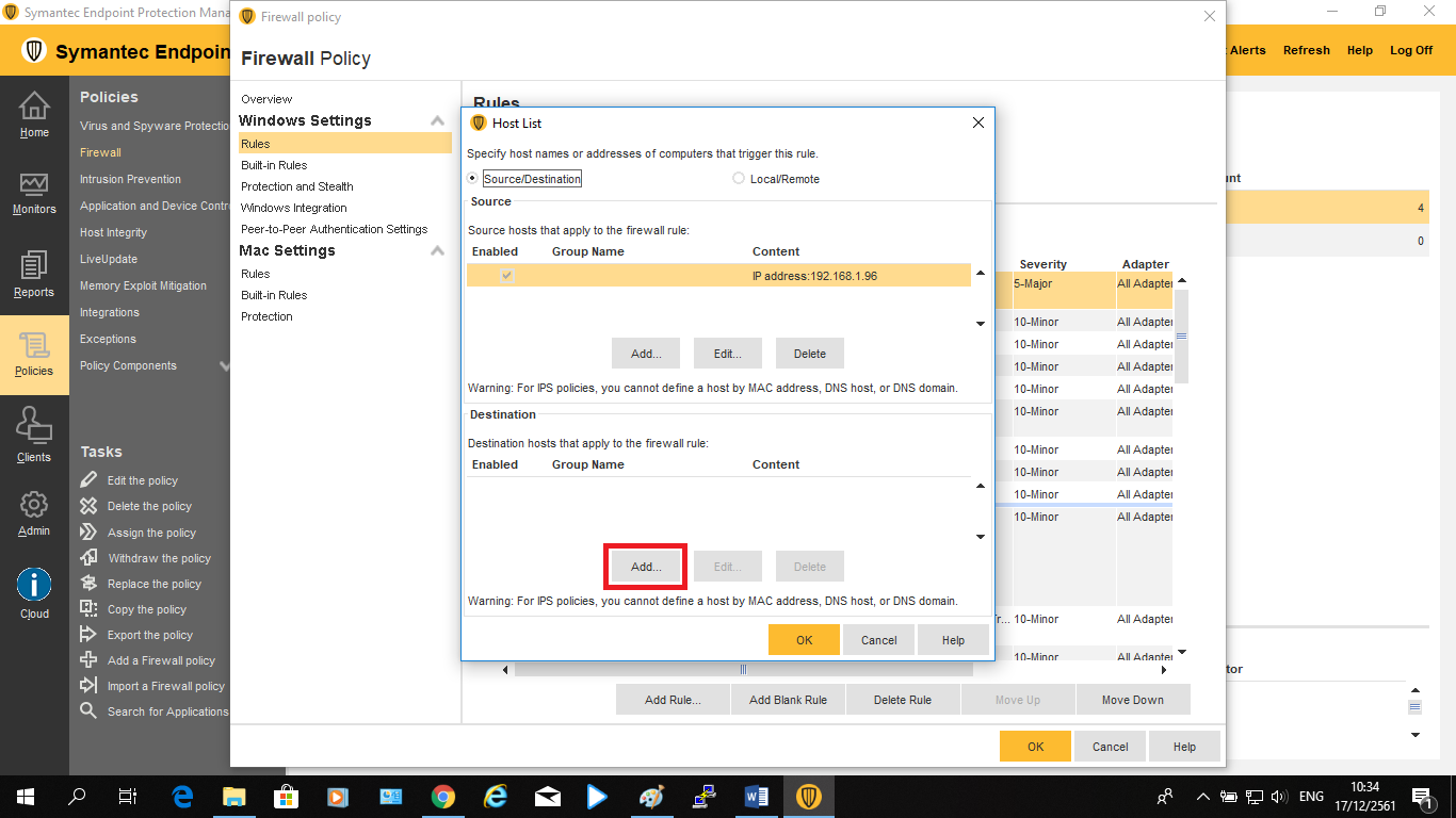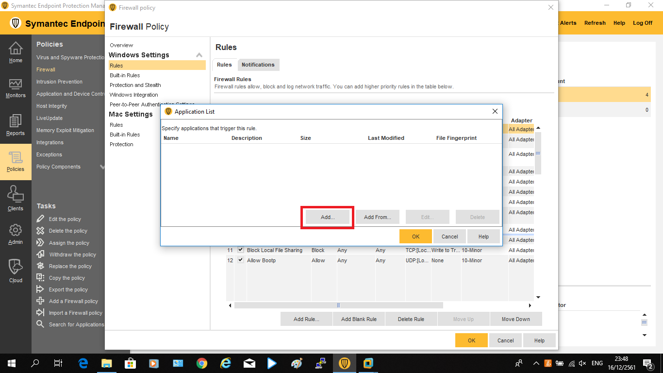 1. กดเข้าไปที่ Policies ที่แถบเครื่องมือด้านซ้ายของโปรแกรม จากนั้นเลือก “Firewall”