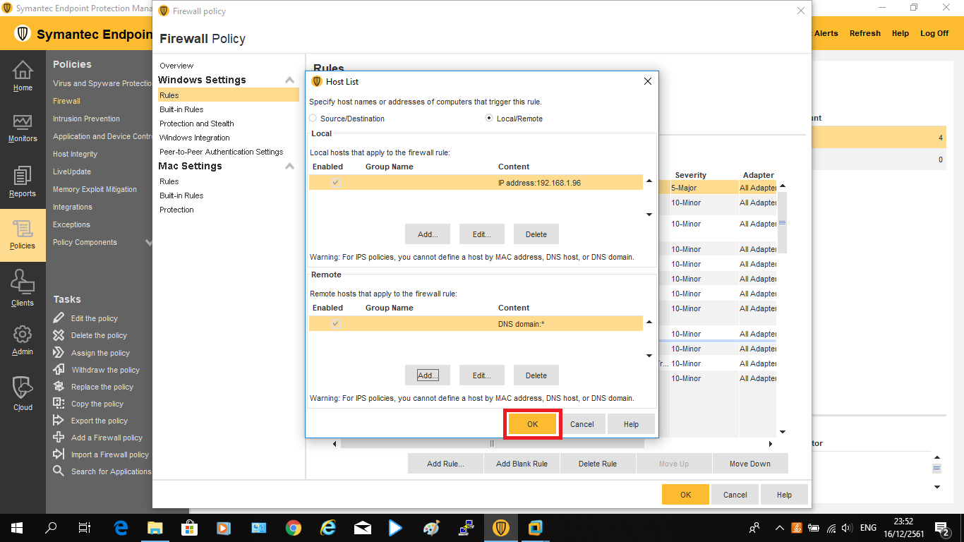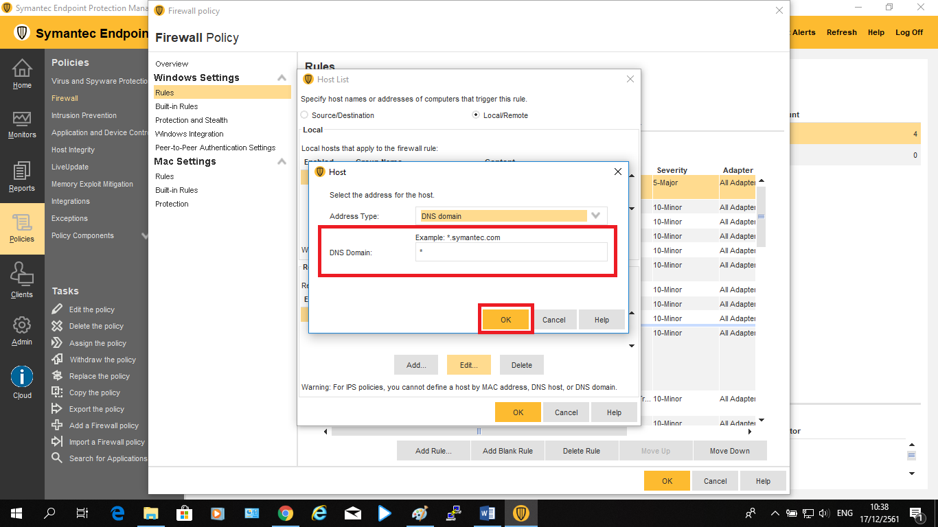 15. กำหนด DNS domain ที่ต้องการไม่ให้เครื่องลูกข่ายเข้าใช้งานได้ เช่น *.facebook.com (กรณีต้องการไม่ให้เข้าเว็บไซต์ทั้งหมดได้เลย ให้ใส่ * ลงไป) จากนั้นกด “OK”