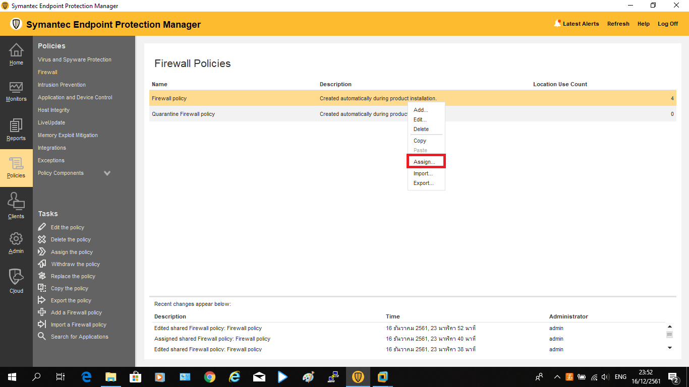 18. คลิกขวาที่ Firewall policy แล้วเลือก “Assign”