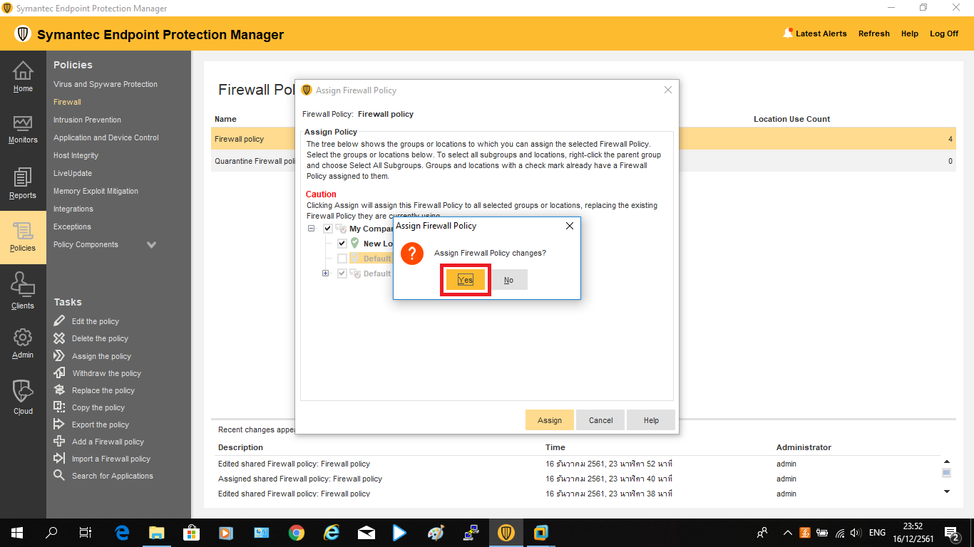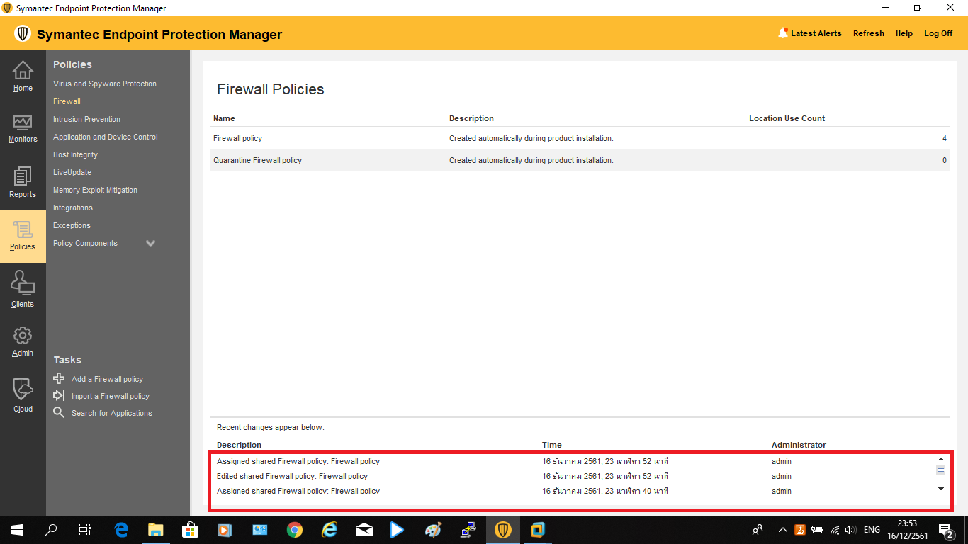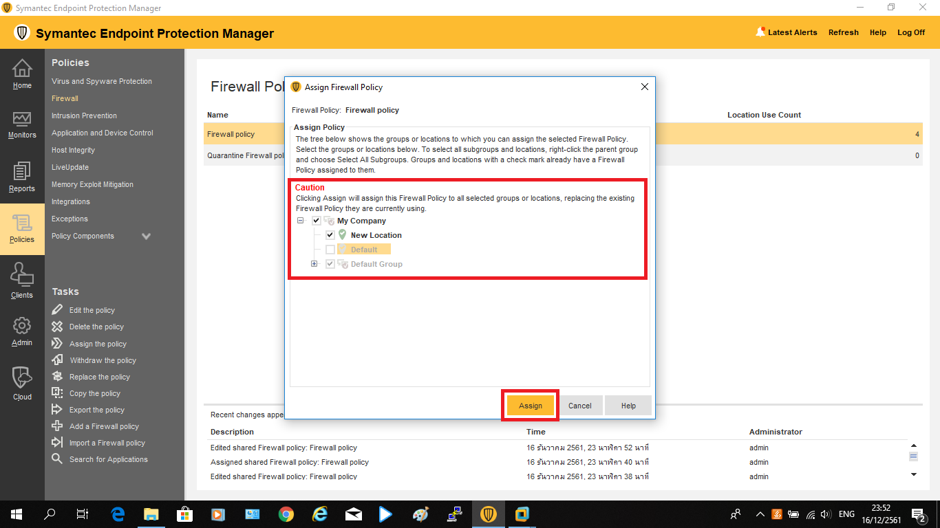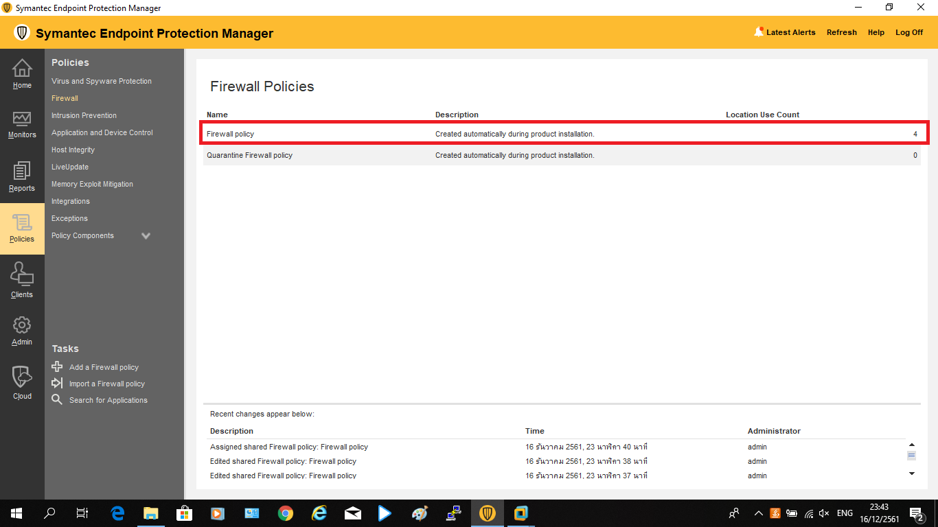 21. ที่แถบสถานะจะแสดงว่าได้มีการ Assign Policy ที่ชื่อ Firewall policy ลงไปแล้ว