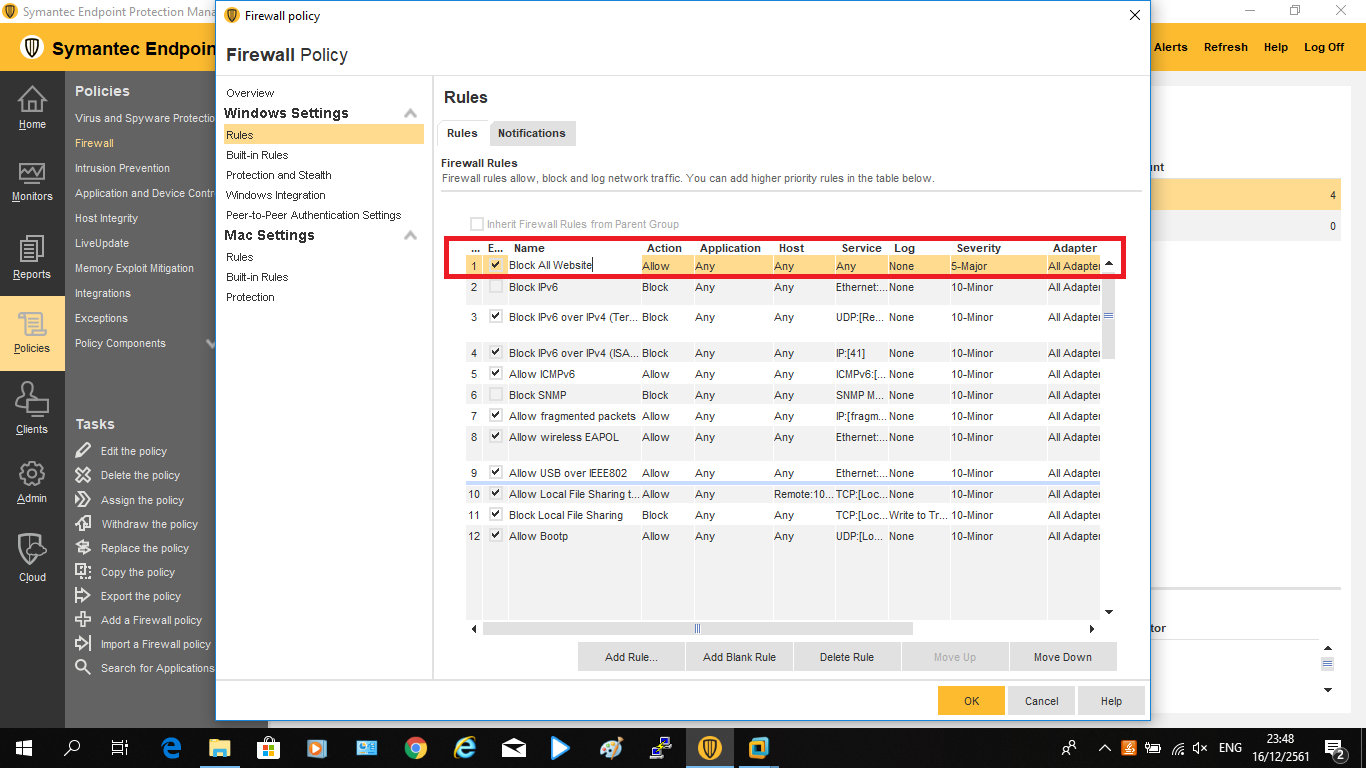5. ในส่วน Name ตั้งชื่อ Rule ที่ต้องการ (ในที่นี้ตั้งชื่อว่า Block All Website)