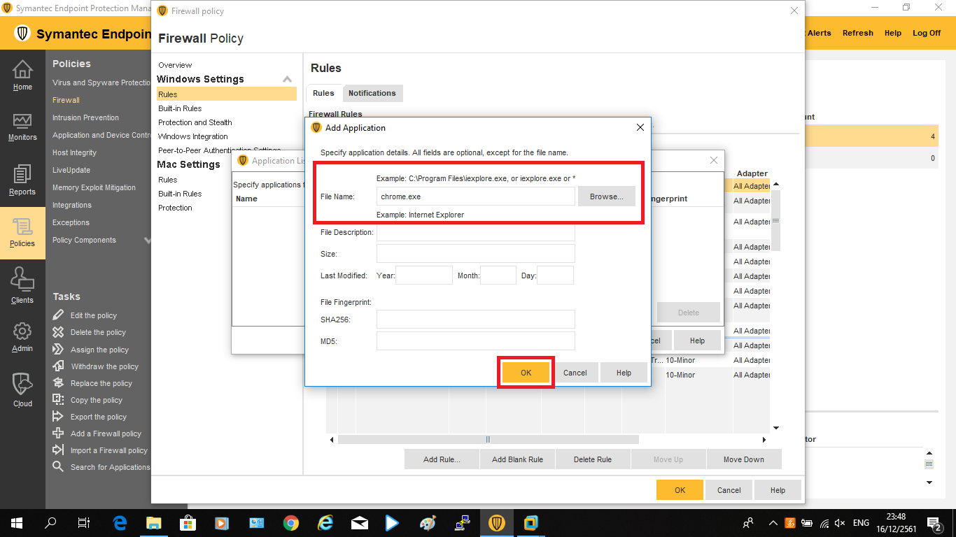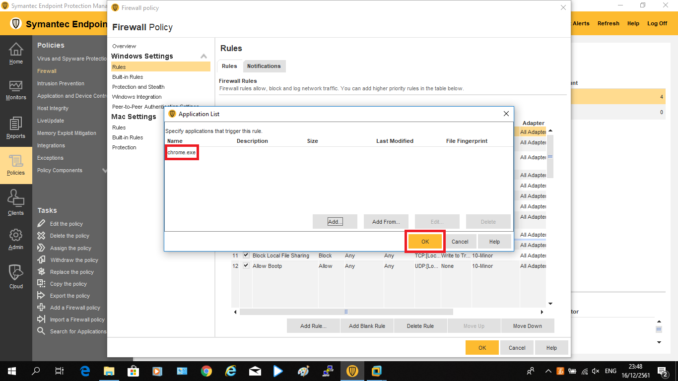 8. เลือก Application ที่ต้องการไม่ให้ออกอินเทอร์เน็ต (ในที่นี้เลือก chrome.exe) จากนั้นกด “OK”