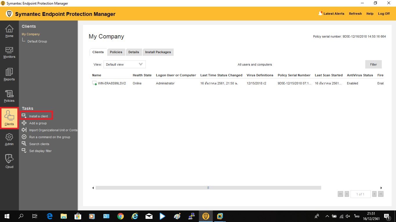 • 1. กดเข้าไปที่ Clients ที่แถบเครื่องมือด้านซ้ายของโปรแกรม จากนั้นเลือก “Install a client”