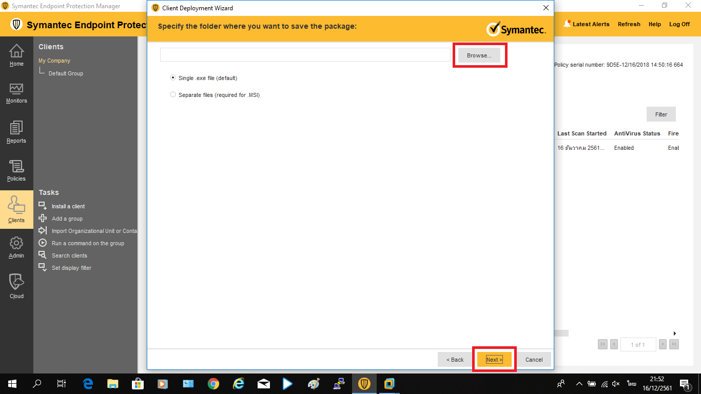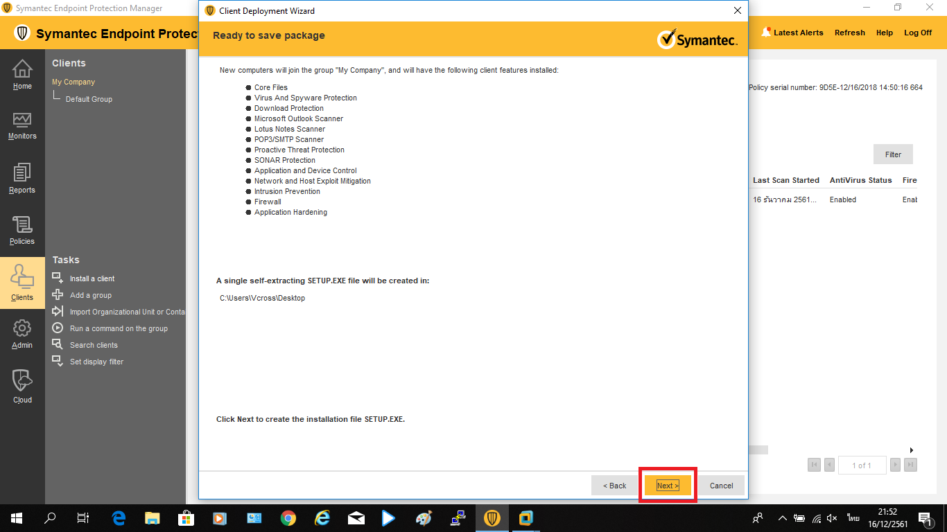 4. เลือก “Save Package” จากนั้นกด Next (กรณีที่ต้องการติดตั้งพร้อมกันหลายๆเครื่อง ให้เลือกแบบ Remote Push)