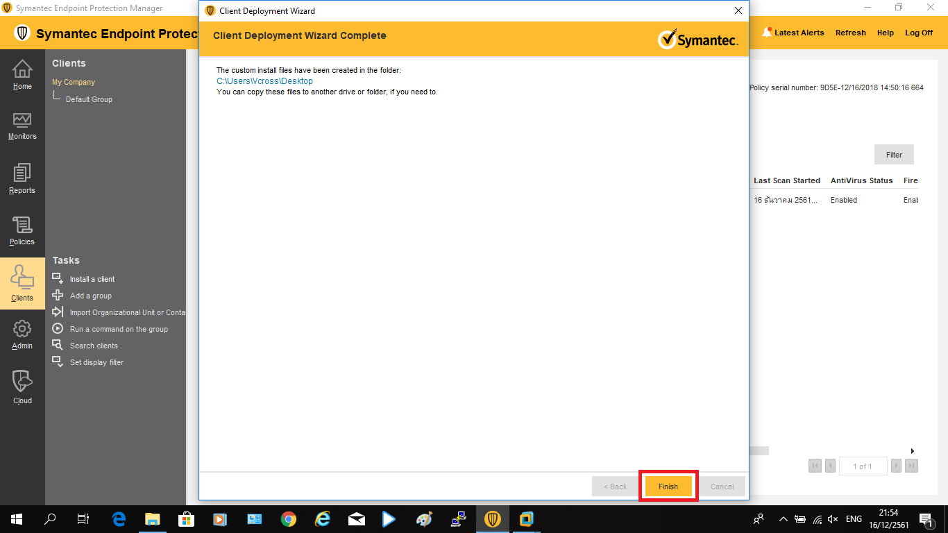 8. เมื่อโปรแกรมสร้าง Package เสร็จแล้ว ให้กด “Finish” แล้วนำไฟล์ Package ที่สร้างแล้วไปติดตั้งตามเครื่องลูกข่ายได้เลย