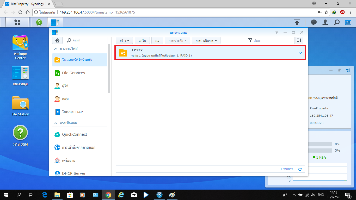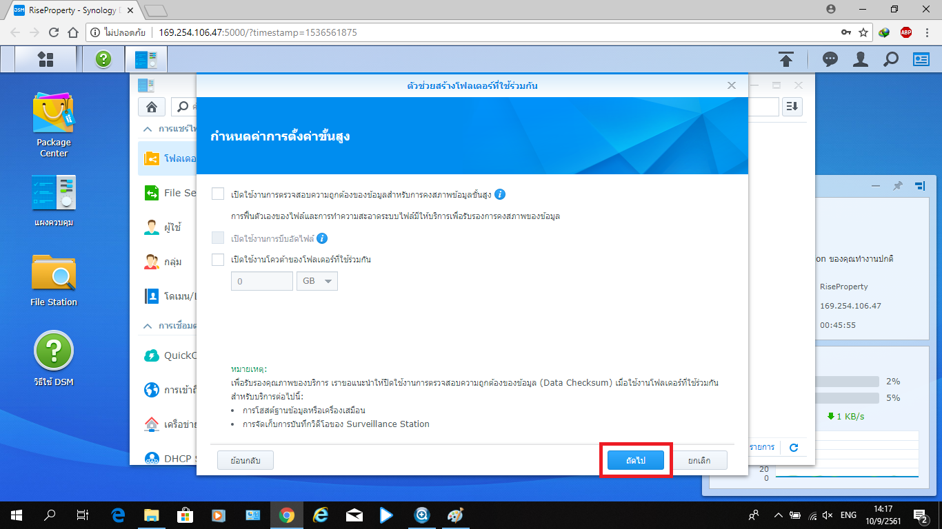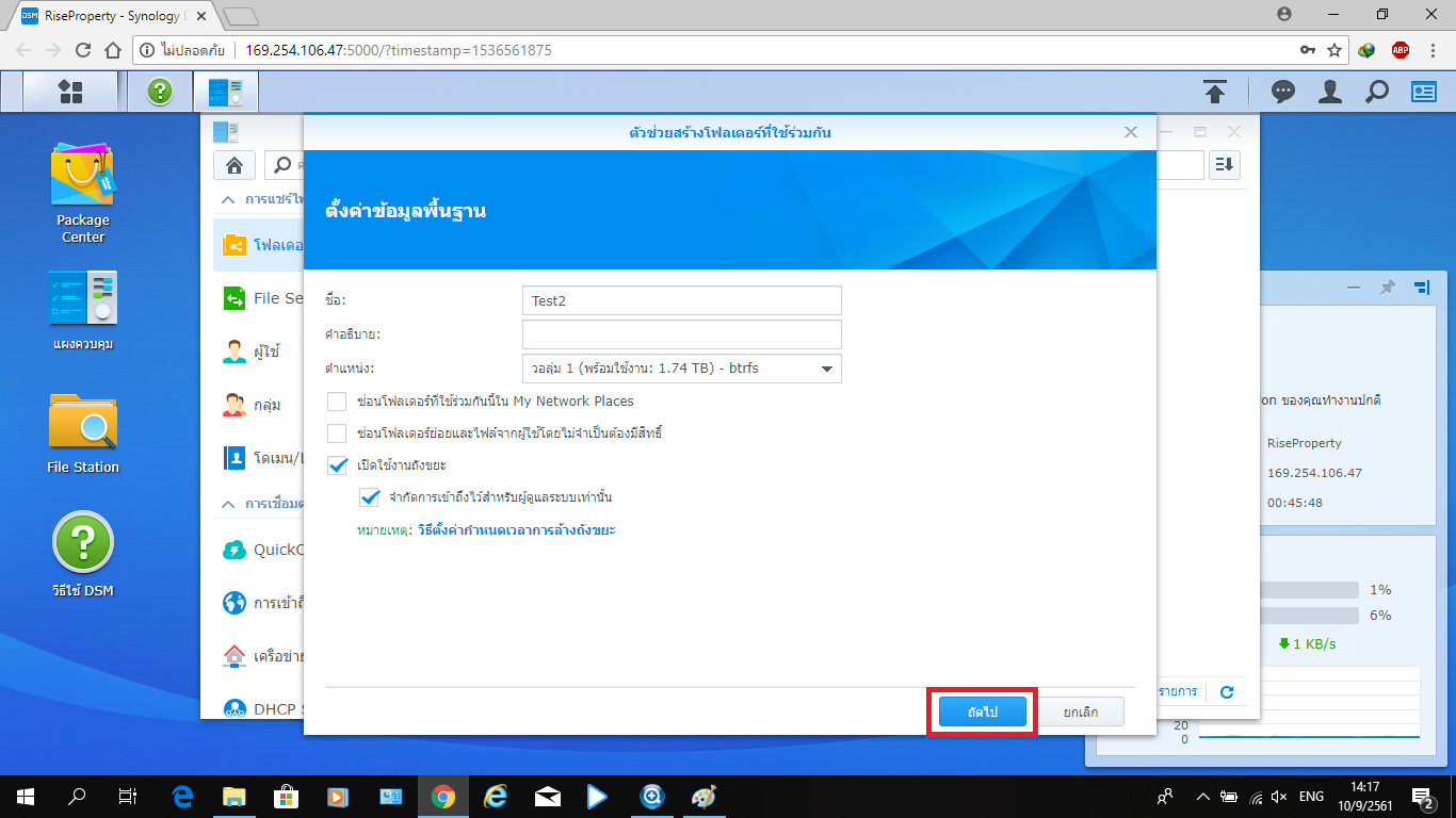 • การสร้างโฟลเดอร์ที่ใช้ร่วมกันใน NAS Synology DS918+