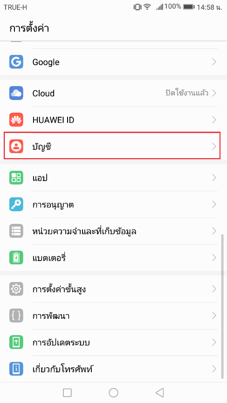 1.1 เข้าไปที่ “การตั้งค่า” แล้วเลือก “บัญชี”