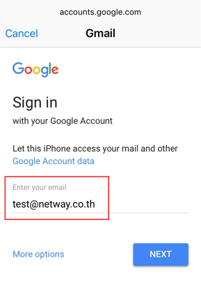 2.2 เลือก “Google” จากนั้นทำการกรอก Username และ Password ของบัญชี G-Suite แล้วกด “Next”