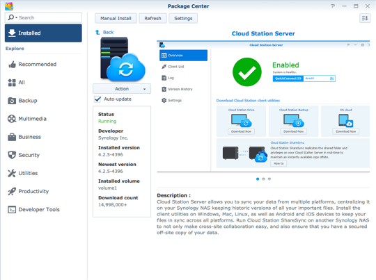 1. เข้าไปที่ "Package Center" แล้วดาวน์โหลด Cloud Station Server ลงใน NAS