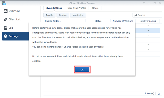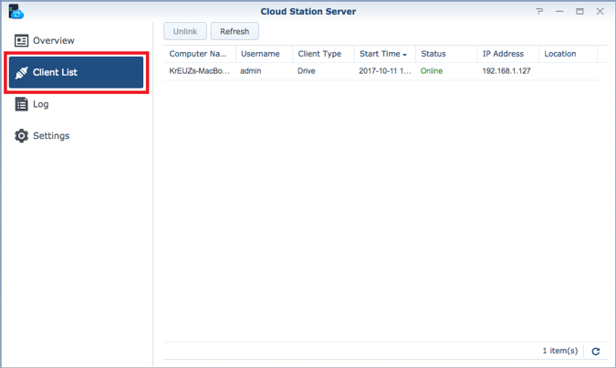 5. สามารถตรวจสอบผู้ใช้งาน Cloud Station ได้จาก Client List ในหน้า Cloud Station Server