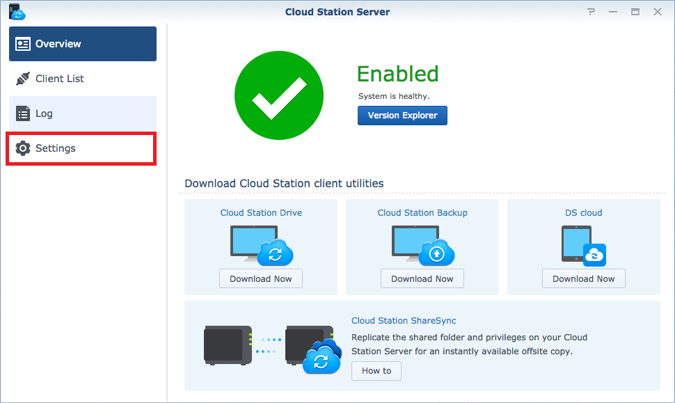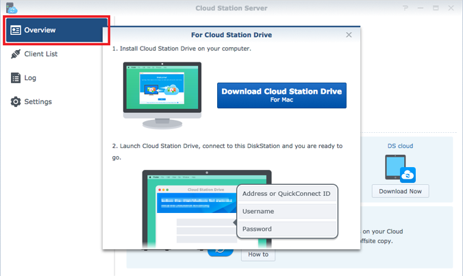 4. ไปที่หน้า "Overview" เพื่อดาวน์โหลด โปรแกรม Cloud Station Drive ไว้ในเครื่อง PC