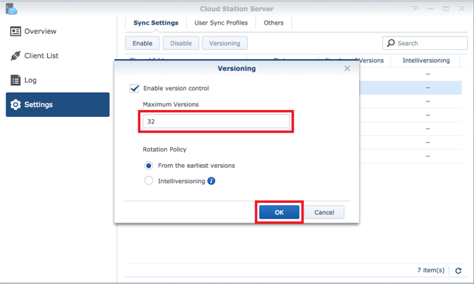 3.1 ระบบจะถามจำนวน Version ของไฟล์ที่ต้องการให้ระบบเก็บไว้ หลังจากนั้นกด “OK”