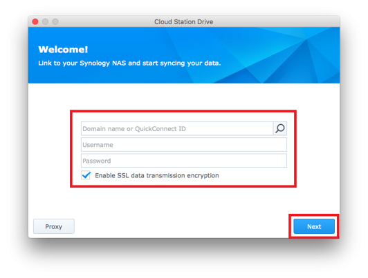 ช่องที่ 1 ให้กรอก Domain name หรือ QuickConnect ID ที่ได้สร้างไว้
