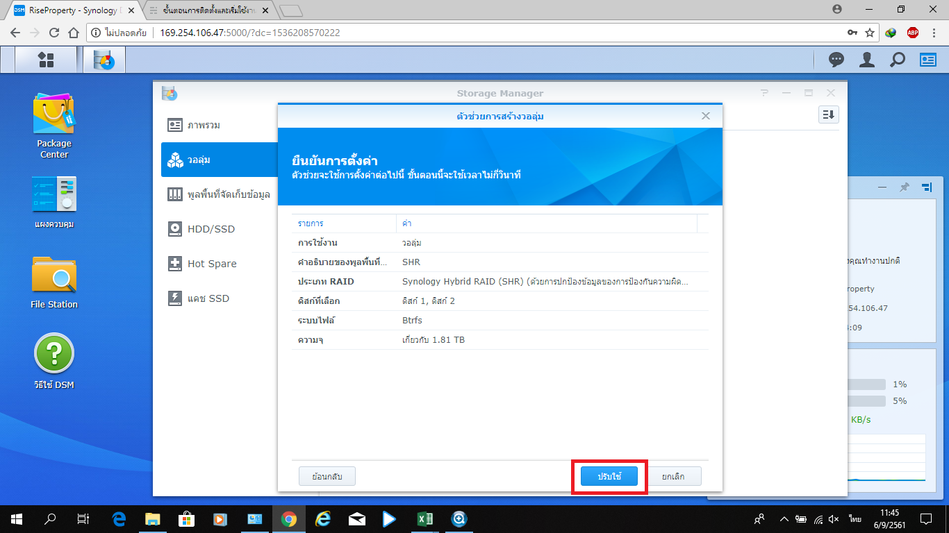 • การสร้าง Volume ใน NAS Synology DS918+