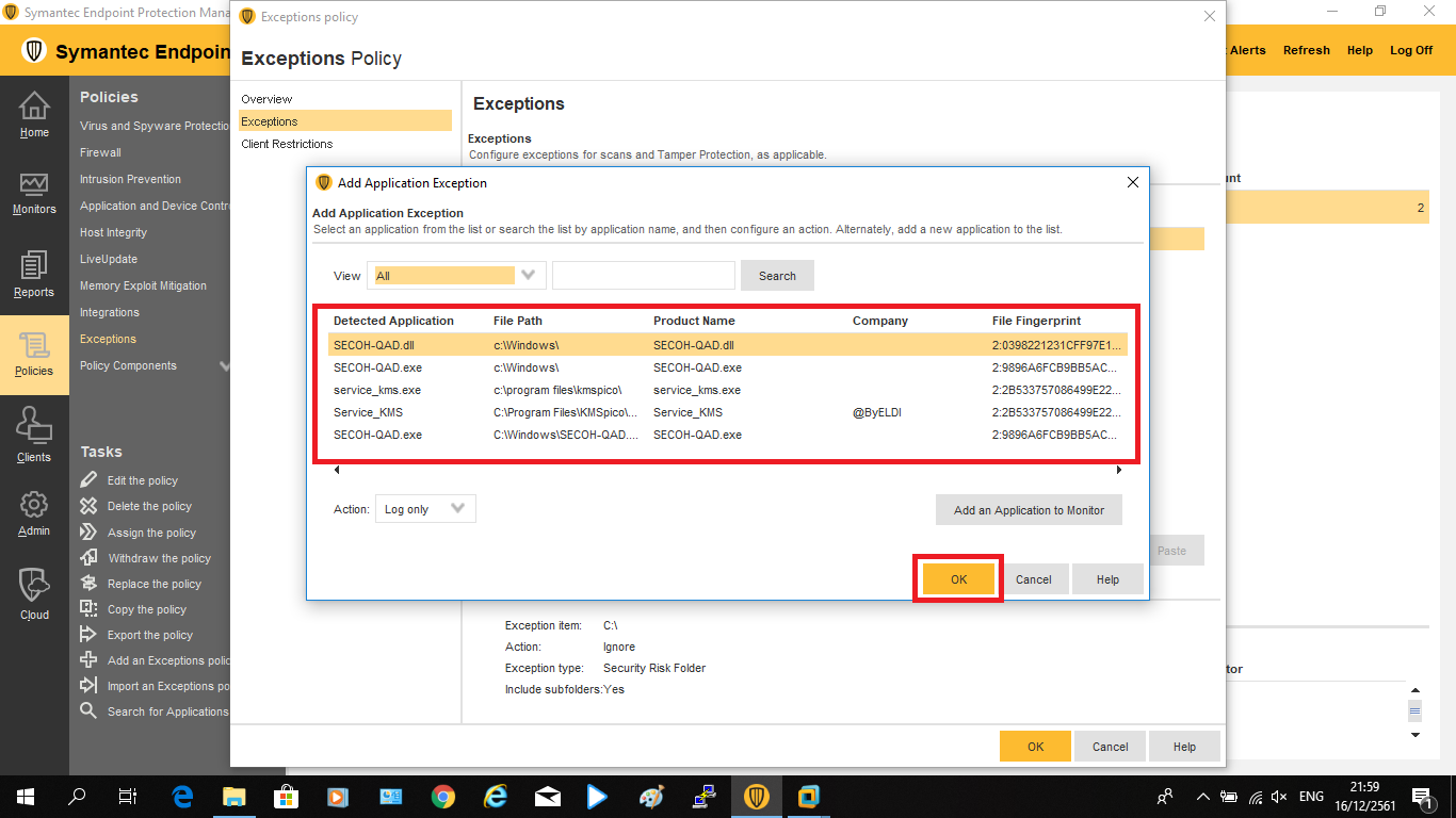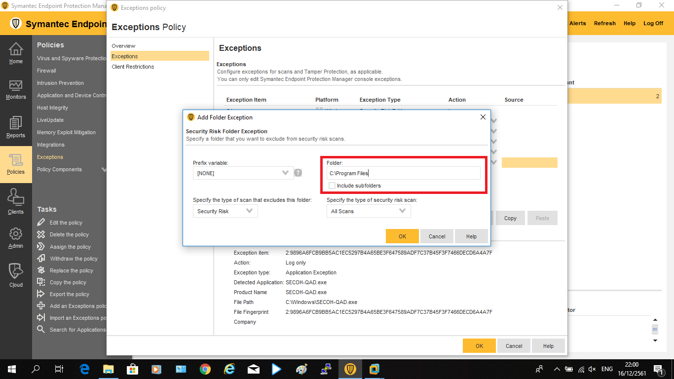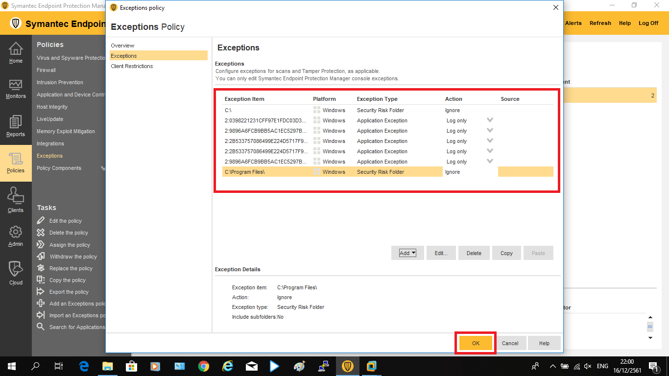 • 1. กดเข้าไปที่ Policies ที่แถบเครื่องมือด้านซ้ายของโปรแกรม จากนั้นเลือก “Exceptions”