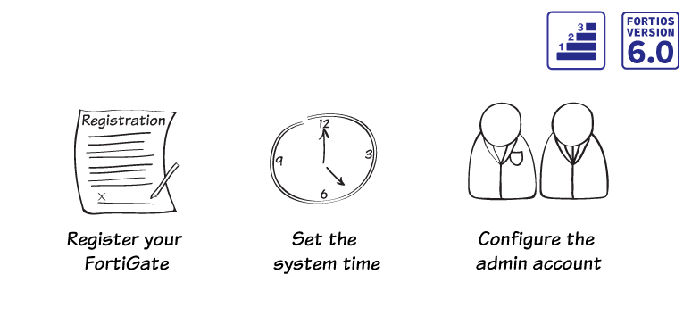 ในกรณีนี้คุณจะทำการจัดการขั้นพื้นฐานต่อไปนี้ เพื่อให้ FortiGate ที่ติดตั้งใหม่พร้อมใช้งาน: