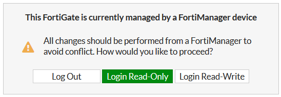 3.6 => เชื่อมต่อกับ Edge. จะมีข้อความเตือนปรากฏขึ้นเพื่อระบุว่า FortiGate ได้รับการจัดการโดย FortiManager แล้ว จากนั้นเลือก “Login Read-Only”