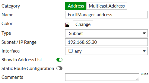2.1 => ในการสร้าง Address สำหรับ FortiManager, ให้ทำการเชื่อมต่อกับ Edge โดยไปที่ “Policy & Objects > Addresses” และสร้าง address ใหม่