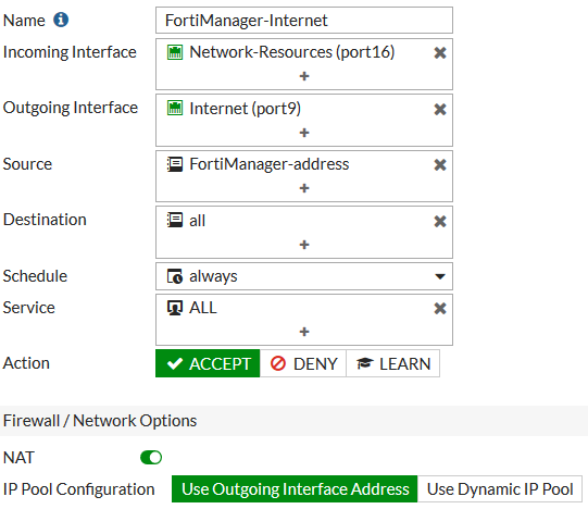 2. การอนุญาตให้ FortiManager มีการเข้าถึงอินเทอร์เน็ต