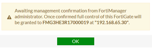 3.2 => หลังจากเลือก Apply ข้อความจะปรากฏขึ้นเพื่อระบุว่า FortiManager ได้รับข้อความแล้ว และ Edge กำลังรอการยืนยันการจัดการ