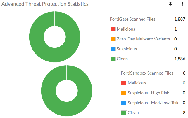 => ในหนึ่งในอุปกรณ์ FortiGate ให้ไปที่ “Dashboard” และค้นหา “Advanced Threat Protection Statistics” widget โดย Widget นี้จะแสดงไฟล์ทั้งการสแกนที่ FortiGate และ FortiSandbox