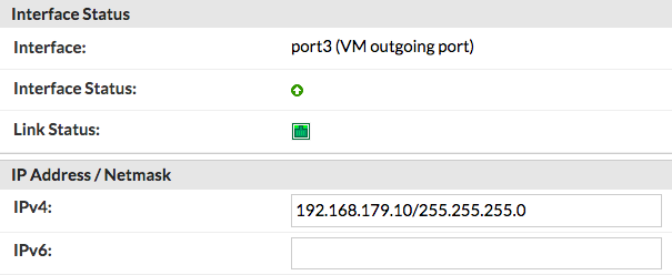 => ตั้งค่า "IP Address/Netmask" เป็น IP Address ภายใน (ในตัวอย่างเป็น 192.168.179.10/ 255.255.255.0)