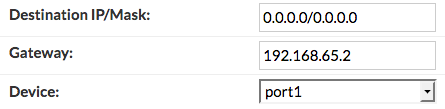 2.3 => ในการเพิ่ม Static route ให้ไปที่ “Network > System Routing” ตั้งค่า "Gateway" เป็น IP Address ของ FortiGate Interface ที่ Port 1 เชื่อมต่อ (ในตัวอย่างเป็น 192.168.65.2)