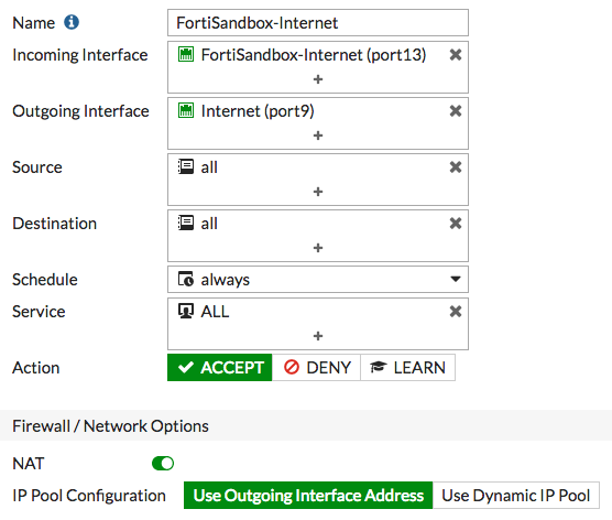 => Port FortiSandbox 3 (VM outgoing port) เชื่อมต่อกับ Port Edge 13