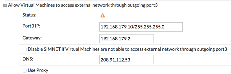 => ไปที่ “Scan Policy > General” และเลือก Allow Virtual Machines to access external network through outgoing port3 ตั้งค่า “Gateway” เป็น IP Address ของ Port 13 บน FortiGate