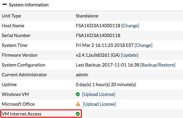 3.3 => ไปที่ “Dashboard” และค้นหา “System Information” widget ตรวจสอบว่า “VM Internet Access” มีเครื่องหมายถูกสีเขียวอยู่ด้านข้าง
