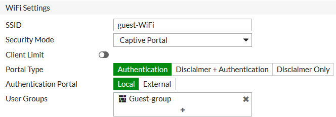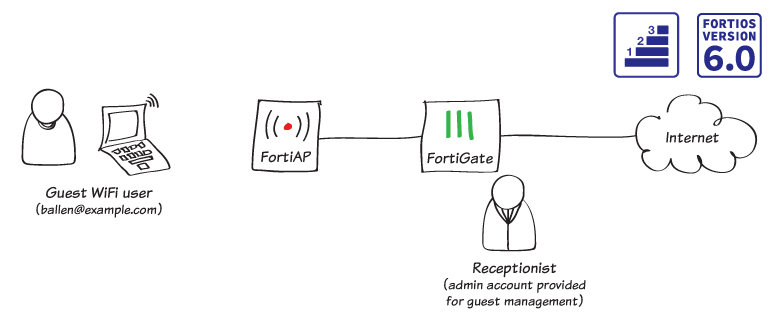 ตัวอย่างนี้ใช้ FortiAP ใน Tunnel mode เพื่อให้การเข้าถึง WiFi กับ Guest สำหรับข้อมูลเกี่ยวกับการกำหนดค่า FortiAP ให้ดูที่คู่มือ “การตั้งค่า WiFi กับ FortiAP”