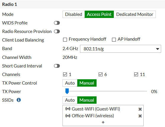 => ภายใต้ “Radio 1”, ให้ตั้งค่า “SSIDs” เพื่อรวม SSID ใหม่