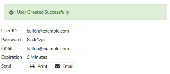 5.2 => หลังจากที่คุณเลือก “OK” ข้อความแจ้งเตือน “User Created Successfully” จะปรากฏขึ้น ซึ่งจะแสดง “Password” ของ Account ใหม่ โดย Password นี้สามารถพิมพ์หรือส่ง Email ไปยัง Guest user ได้ หลังจากนี้คุณยังสามารถดู Password ได้ โดยไปแก้ไข User account