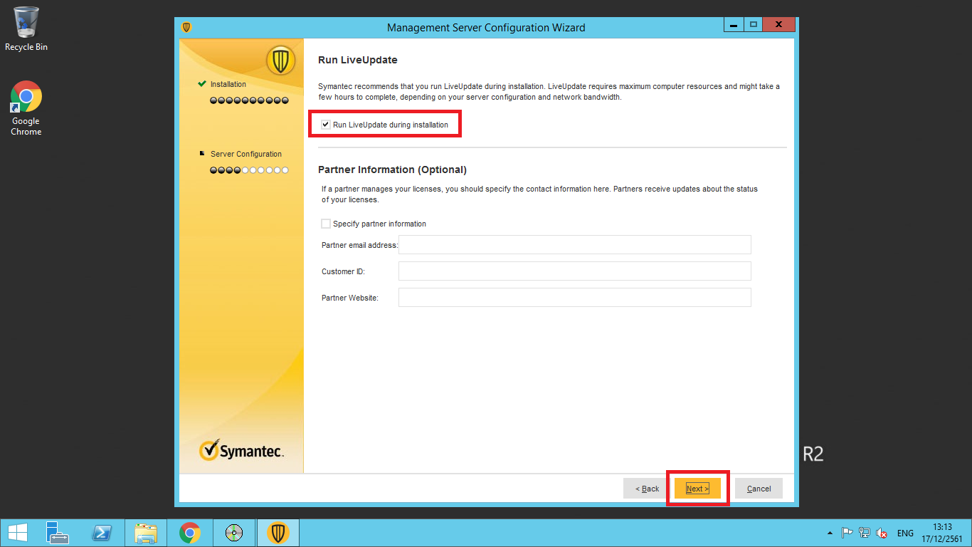 การติดตั้ง Symantec Endpoint Protection Manager