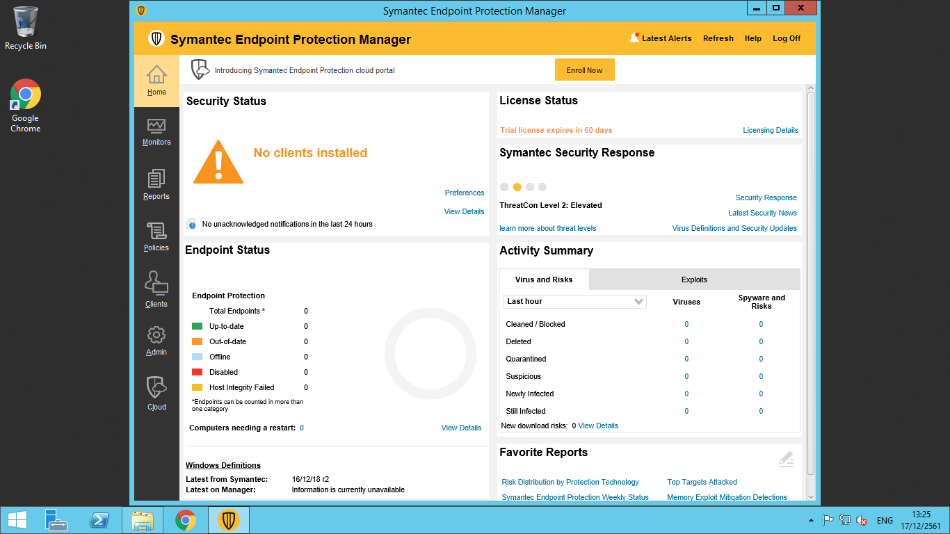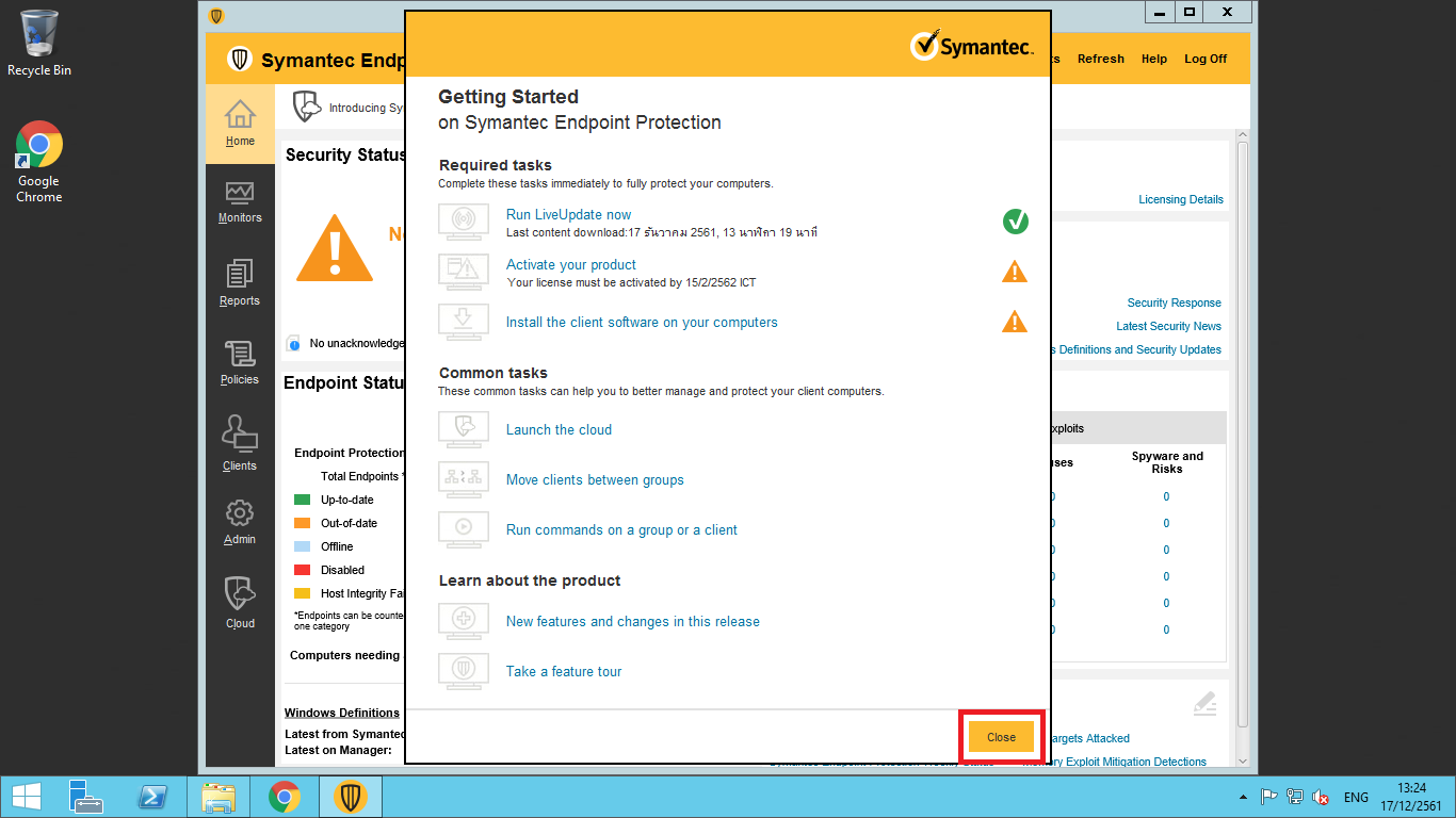 20. หน้าแรกของ Symantec Endpoint Protection Manager พร้อมสำหรับทำการตั้งค่าต่างๆ