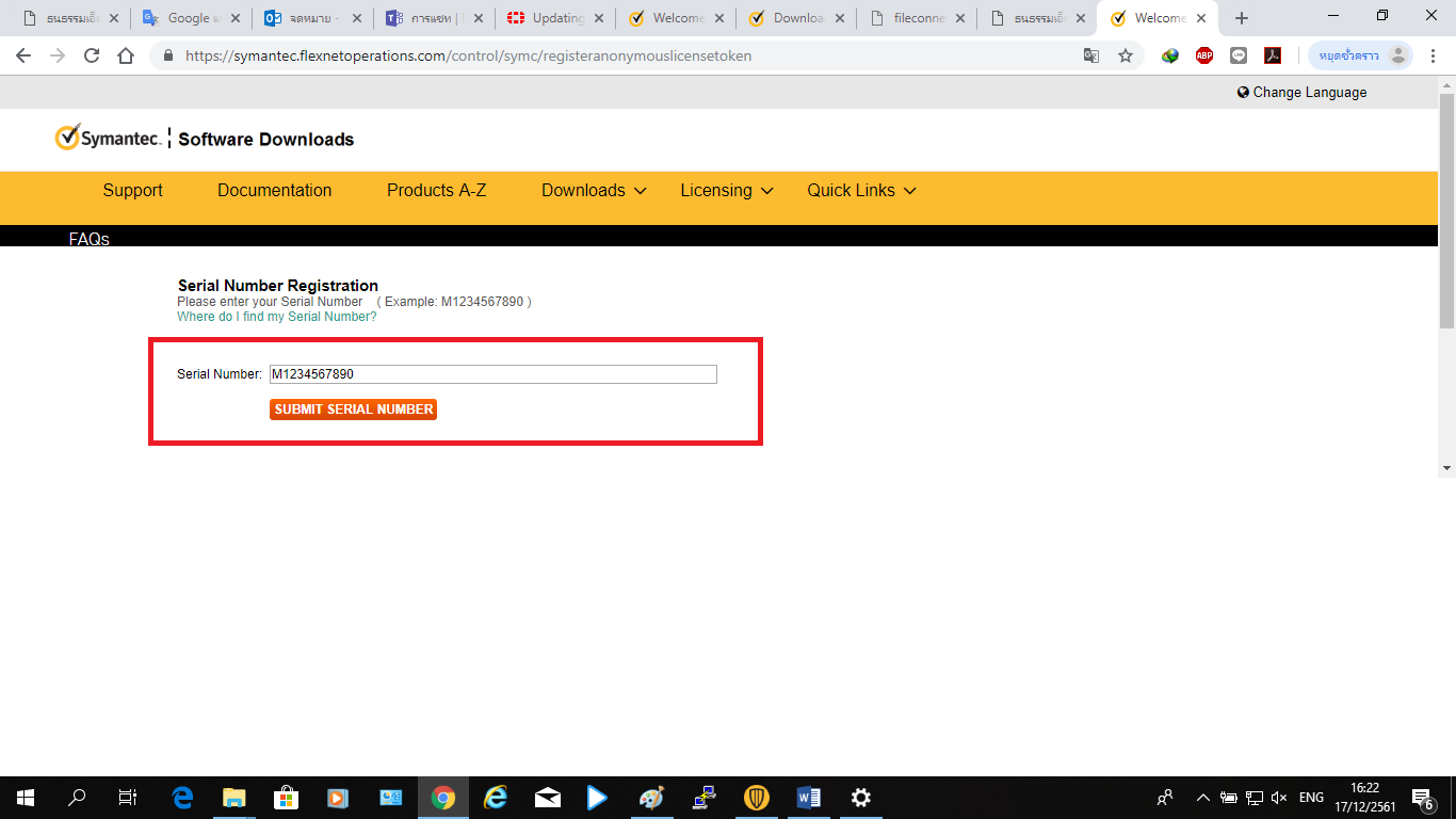 2. ใส่เลข Serial Number ของผลิตภัณฑ์ลงไป จากนั้นกด “SUBMIT SERIAL NUMBER”