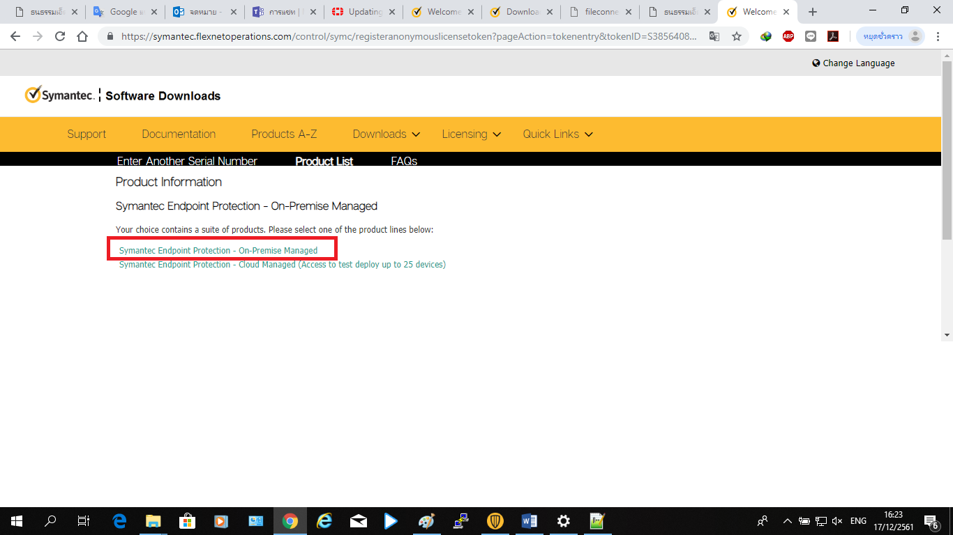 3. เลือกหัวข้อ Symantec Endpoint Protection - On-Premise Managed