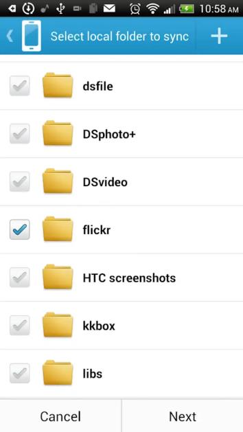 DS Cloud จะคู่กับ Cloud Station สำหรับโทรศัพท์มือถือ ซึ่งช่วยให้เลือกโฟลเดอร์บน DiskStation ที่ต้องการซิงค์กับโทรศัพท์มือถือ และสามารถใช้งานได้สำหรับการดูแบบออฟไลน์ อีกทั้ง DS cloud ยังช่วยให้สามารถควบคุมเกณฑ์การซิงค์ทั้งหมด: สำหรับแต่ละโฟลเดอร์, สามารถกำหนดขนาดไฟล์สูงสุดรวมทั้งชนิดของไฟล์ที่ต้องการซิงค์ได้