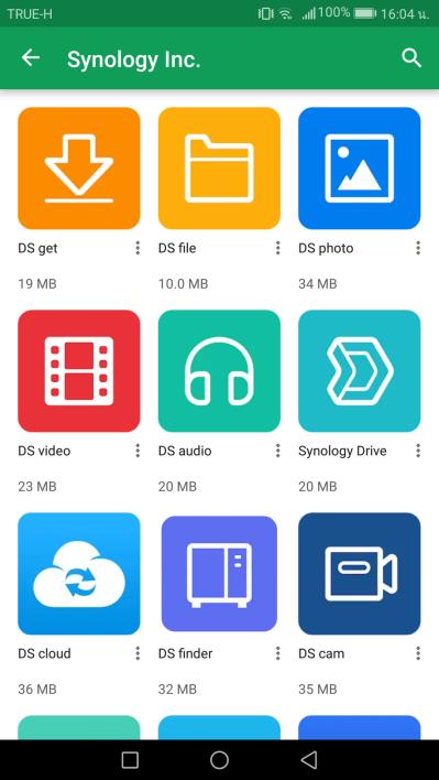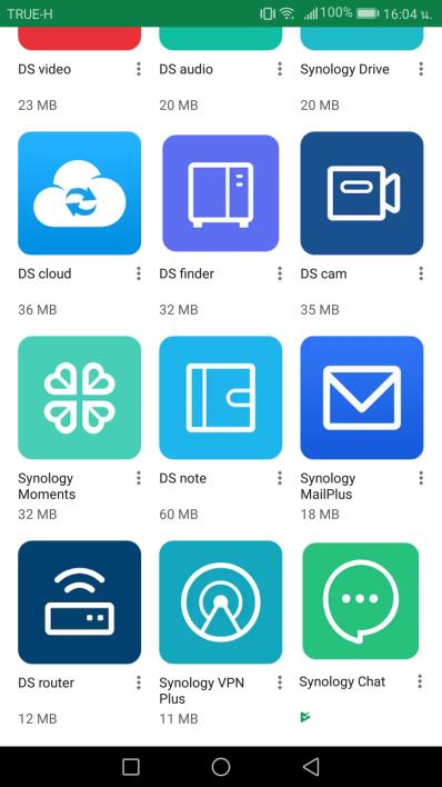 Synology มี Application สำหรับให้ผู้ใช้งานเลือกใช้ทั้งหมด 15 Application คือ DS get, DS file, DS photo, DS video, DS audio, Synology Drive, DS cloud, DS finder, DS cam, Synology Moments, DS note, Synology MailPlus, DS router, Synology VPN Plus และ Synology Chat
