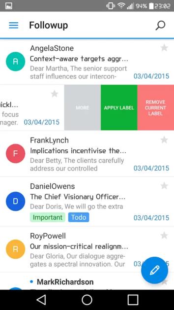 การเขียนอีเมล์ หรือการตอบกลับข้อความบนโทรศัพท์มือถืออาจเป็นเรื่องยุ่งยาก ด้วยการออกแบบที่ใช้งานง่ายของ MailPlus ทำให้สามารถทำงานได้มากขึ้นโดยใช้ความพยายามน้อยลง มีการจัดระเบียบอีเมล์ช่วยให้สามารถใช้งานอีเมล์ได้อย่างรวดเร็ว มีแม่แบบ Quick-reply ซึ่งจะบันทึกการกดแป้นพิมพ์ซ้ำๆ และทำให้การตอบกลับข้อความมีประสิทธิภาพยิ่งขึ้น ด้วย MailPlus การจัดการอีเมล์จึงเป็นเรื่องง่าย