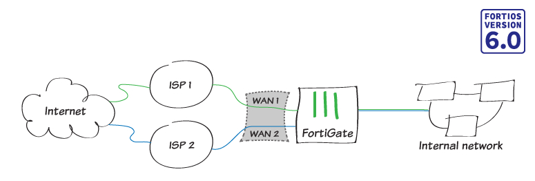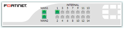 1.1 => เชื่อมต่อ Port อินเทอร์เน็ต (Port WAN) บน FortiGate กับอุปกรณ์ ISP ของคุณ เชื่อมต่อ WAN1 กับ ISP ที่คุณต้องการใช้สำหรับการรับส่งข้อมูลส่วนใหญ่ และเชื่อมต่อ WAN2 กับ ISP อื่น ๆ