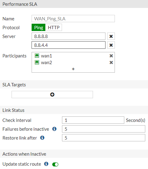 => ไปที่ “Network > Performance SLA” และสร้าง Performance SLA ใหม่